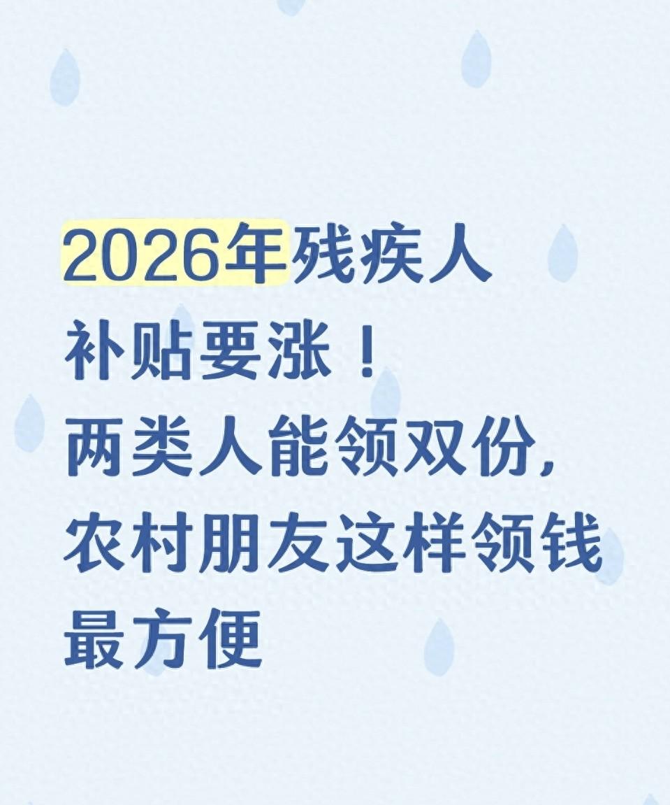 - 2026年残疾东说念主补贴要涨!2类东说念主能领双份,适应要